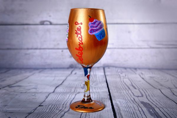 Happy Birthday To Me Wine Glass 20oz Hand Painted Sold Per Wine