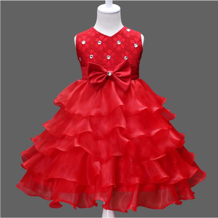 New Year Red Dress Birthday Party Girl Cake Dress 2 8 Years